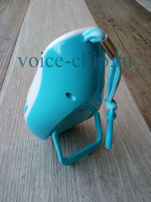 Есть кольцо на шнурке для расположения в подвешенном состоянии, так же сть встроенная поставка для установки вертикально на поверхность..