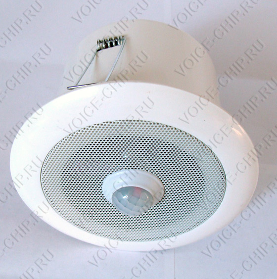 Потолочный звуковой аудио информатор с датчиком движения автоматически воспроизводит голосовые сообщения или музыку, когда кто-то проходит рядом с ним. Преимущества размещения в подвесном потолке: информатор незаметен для посетителей, хорошо вписывается в любой интерьер, легко и быстро монтируется. Кроме основной функции может играть роль детектора движения для включения освещения (одновременно с воспроизведением музыки будет гореть свет или включаться любое электрическое устройство).