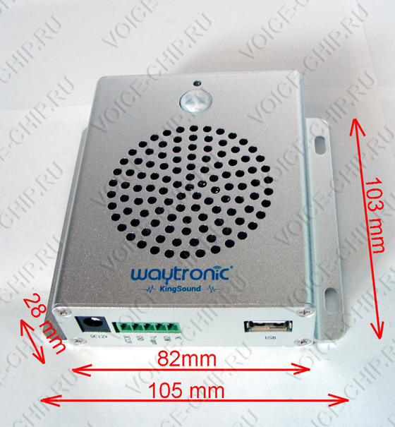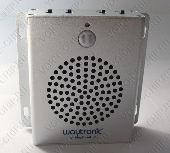 Антивандальный звуковой маяк (информатор) KingSound в эстетичном серебристом металлическом корпусе с датчиком движения. Автоматически воспроизводит аудио или музыкальные сообщения, когда кто-то проходит мимо него. Одновременно с проигрыванием аудио сообщения может включаться внешнее электрическое устройство (лампа освещения или др.) Это функция позволяет использовать KingSound в качестве автоматического включателя освещения.