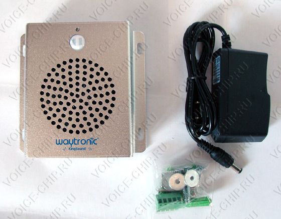 Комплект поставки: Информатор KingSound, адаптер для работы от сети ~220 В, колодка подключения, крепежные винты с пластмассовыми дюбелями (чопиками).