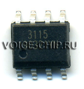 Однократно-записываемая звуковая микросхема 3115 в корпусе SOP8 150mil. Длительность записи до 60 секунд. Напряжение питания 1,8..5,5 В. Прямой PWM выход на динамик 8 Ом, мощность ~0.1..0.25 Вт. 4 входа-выхода с гибкими настройками. Из внешних элементов нужен только конденсатор по питанию 0,1 uF. Микросхема поставляется уже записанная с нужными вам аудиофайлами. Для количества от 1000 шт. возможна поставка чистой (незаписанной) в комплекте с программатором.
