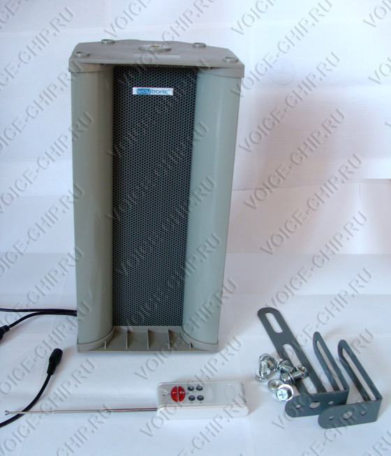 Комплект поставки: звуковой информатор PS-600D, дистанционный пульт управления, кронштейны и крепежные винты.