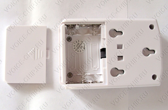Датчик движения срабатывает на растоянии до 4..5 м, угол обзора по сторонам ~120 гр. Работает от трех батареек ААА (в комплект не входят) или внешнего адаптера 5 В.