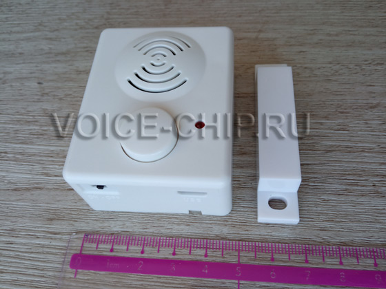 Маленький звуковой информатор с магнитным датчиком для крепления на дверь, створку окна или любую открывающуюся панель. Может использоваться в качестве голосового / музыкального визитера на входную дверь, для информации / рекламных сообщений / напоминаний закрыть дверь и т.д.