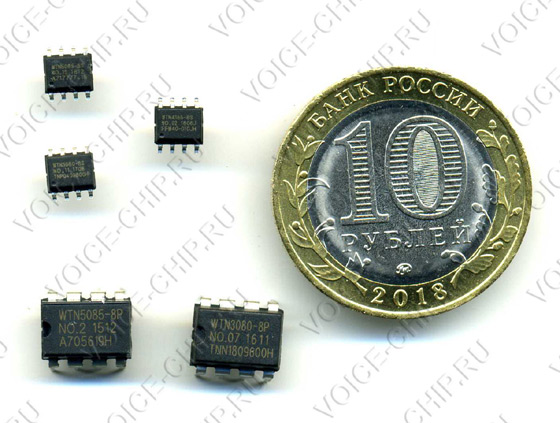 Однократно-записываемые (OTP) микросхемы серии WTN для хранения и воспроизведения аудиосообщений максимальной длительностью до ~1,5 минуты в 8-ми выводном корпусе для SMT монтажа - простой и дешевый способ добавить голосовые сообщения и короткие музыкальные фрагменты в ваше электронное устройство, прибор, гаджет. Ваши аудиосообщения будут звучать четко и разборчиво, а музыку можно записать с качеством до 44,1 кГц.
